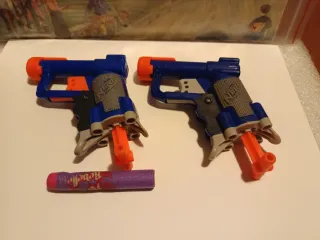 usadas. solo tengo una bala y esta algo arrugada por lo que no dispara bien. una pistola se engancha un poco al disparar.