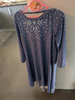 Vestido de Frozen con capa de tul brillante. - Diseño inspirado en Elsa. - Cuello de pelo sintético blanco. - Estampado de copos de nieve y detalles plateados.