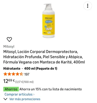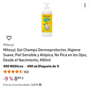 Gel champú dermoprotector Mitosyl para bebés. Ideal para higiene suave, piel sensible y atópica. No irrita los ojos. Crema hidratante - Formato: 490 ml. - Apto desde el nacimiento. Sin usar *el tapon del gel esta "defectuoso" hace su función pero esta suelto