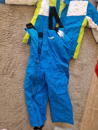Conjunto de chaqueta y pantalón de esquí para niño. - Marca: Wed'ze - Talla: 3-4 años - Color: Azul, verde lima y blanco