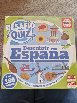 Juego de mesa Desafío Quiz Descubrir España de Educa. - Más de 380 preguntas. - Categorías: Historia, Cultura, Curiosidades, Geografía y Preguntas Visuales. - Para 2-4 jugadores. - Edad recomendada: 7+ años. - Duración aproximada: 30 minutos.