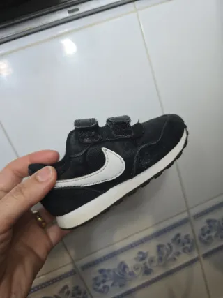 Zapatillas deportivas Nike para niño, con cierre de velcro. - Color negro. - Swoosh blanco. - Suela blanca.