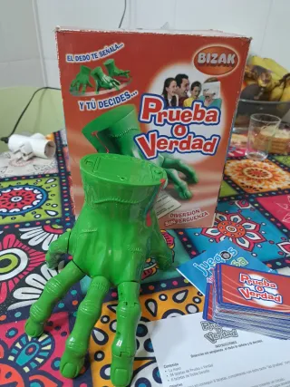 Juego de mesa Prueba o Verdad de Bizak. Incluye el juego de mesa y las tarjetas. - El dedo electrónico señala al jugador. - Incluye 54 tarjetas de Prueba o Verdad. - Para 2-6 jugadores.
