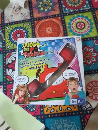 Juego de mesa Juego del Teléfono Electrónico. - Graba y distorsiona mensajes electrónicamente. - Incluye figuras de niños. - Edad recomendada: 6+ años.