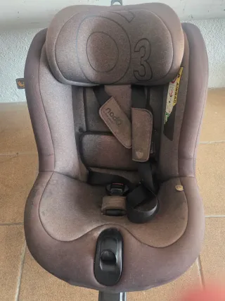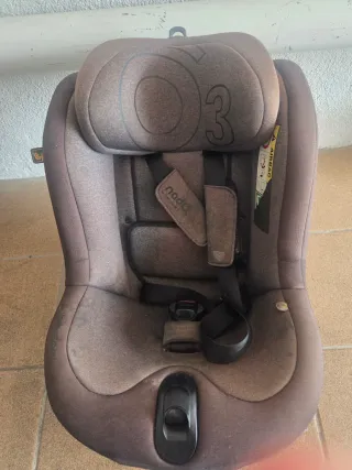 Silla de coche para bebé con diseño moderno y cómodo. - Color marrón jaspeado. - Incluye arnés de seguridad de 5 puntos. - Funda extraíble y lavable.