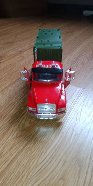 Camión de juguete estilo americano, fabricado en metal y plástico. Sus puertas se abren para un mayor realismo. - Cabina detallada. - Contenedor verde.