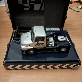 Camión de slot SISU con cámara de TV. Precioso y raro camión de la marca Fly Slot con cámara. Es una de las dos únicas versiones de camion con cámara que comercializó Fly, y uno de las tres referencias con este dispositivo.El otro camión era el Mercedes y como vehículo el Alfa 147. Sin uso, proviene de mi colección personal y nunca lo he usado, aunque la caja presenta desperfectos, faltando alguna de las protecciones metálicas que protegen las esquinas. No se envía mediante la aplicación. Entrego en mano o envío certificado con un coste de 7 euros tras ingreso en cuenta, Bizum o PayPal como familiar o amigo. Modelo muy raro