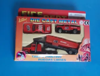 Set de vehículos de bomberos de metal - Incluye camión cisterna, coche y todoterreno, estación de bomberos y complementos - Diseño de bomberos con detalles. - Ruedas libres para jugar.