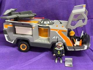 Camión espía de Playmobil, modelo 5286. Un vehículo de exploración con diseño futurista. - Incluye dos figuras de Playmobil. - Compartimentos de carga y cabina. - Incompleto •Hago envíos ordinarios y certificados, previo pago por bizum