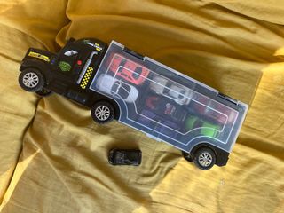 Camión de unos 35 cm, de plástico, en el que puedes llevar varios coches, tipo maletín. Los coches NO están incluidos.