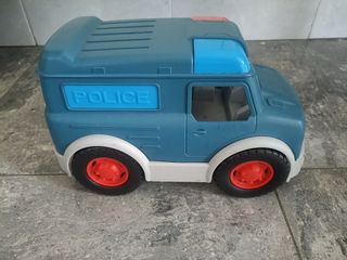 Camión de policía de juguete de gran tamaño, ideal para horas de diversión. Usado pero en buen estado. - Color azul y blanco. - Detalles en color azul brillante. - Ruedas rojas.