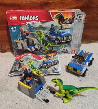 También dispongo del 10758. Con todas las piezas, figuras, instrucciones y caja. Dispongo de más Lego. Se envía desmontado en bolsas numeradas como nuevo. ¡Da a tu pequeño la oportunidad de descubrir lo fascinante que es explorar participando en una divertida aventura LEGO® Juniors Jurassic World con el set Camión de rescate del Raptor! Contiene un chasis listo para construir y una jaula desmontable con puerta que se abre, así como un Raptor para construir articulado con boca móvil. Este divertido juguete incluye también una sencilla guía de construcción y juego para fomentar la confianza en niños de 4 a 5 años.