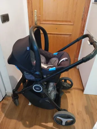 Conjunto de cochecito para bebé en color gris, ideal para los primeros años. - Capazo. - Silla de paseo. - Silla de coche (Grupo 0+).