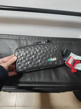 Asiento elevador Mifold compacto y portátil. - Diseño plegable para fácil transporte. - Acabado texturizado en color negro.