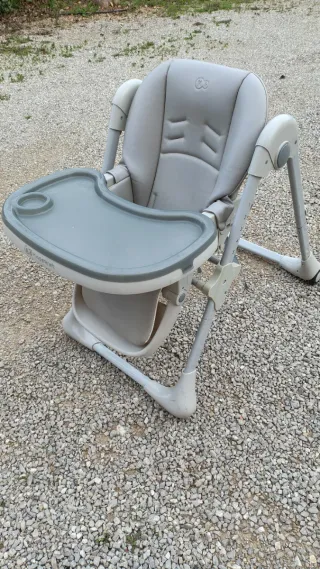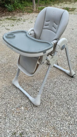 Silla de comer para bebé, ideal para las comidas. Me costo 249 euros hace 2 años - Color gris y blanco. - Incluye cojín con estampado de estrellas. - Bandeja extraíble.