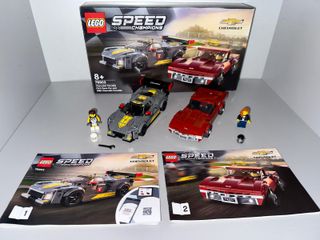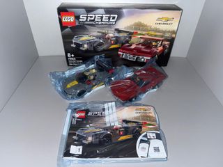 Set de construcción Lego Speed Champions 76903. - Incluye la caja original y los manuales de instrucciones. - De todo el set solo le falta una unica pieza de la parte inferior del maletero del chevrolet Rojo, pero exteriormente apenas se aprecia esa pieza, en la foto se puede ver el coche a fecha del anuncio.