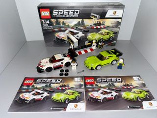 Set de construcción LEGO Speed Champions 75888 Porsche 911 RSR y 911 Turbo 3.0. El set está completo y ha sido revisado. *Con lo del color al Sol intentaba resumir que tal como se ve en las fotos de mi set en el color de las piezas se nota el haber estado expuesto y desgastado por el Sol. - Incluye la caja original. - Incluye los manuales de instrucciones.