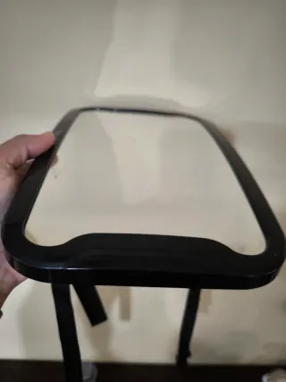 Espejo diseñado para colocar en el asiento trasero del coche, permitiendo ver al bebé. - Marco negro. - Correa de sujeción.