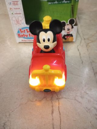 Este es un vehículo de juguete de los Tut Tut Bólidos Disney de VTech, específicamente el camión de bomberos de Mickey Mouse. Incluye la voz Este es un vehículo de juguete de los Tut Tut Bólidos Disney de VTech, específicamente el camión de bomberos de Mickey Mouse. Incluye la voz original de Mickey Mouse. Cuenta con 3 canciones y 6 melodías en "Aleman"