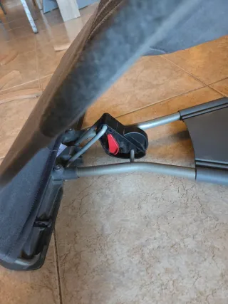 Carro Bugaboo 5 en color negro con capota azul claro de verano. - Chasis negro. - Capota negra invierno de recambio. - Ruedas delanteras giratorias. - Cesta de compras. - Manillar ajustable. -Manillar nuevos. -Algunos roces en la estructura.