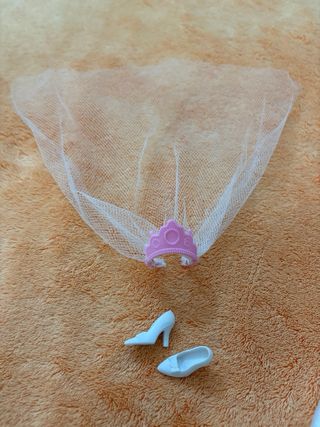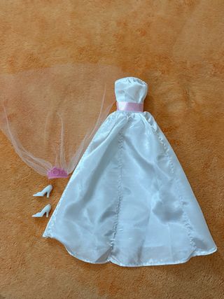 Conjunto de vestido de novia para muñeca Barbie, incluye velo, corona y zapatos.
