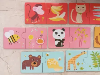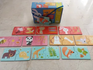 Set de 10 puzzles de la marca Djeco, modelo Puzzle Duo. Cada puzzle está compuesto por dos piezas y presenta un animal.