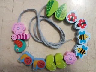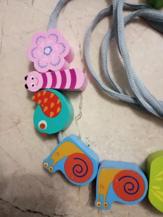 Set de cuentas de madera para enhebrar con formas de animales y flores de Playtive Vine sin caja