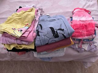 Conjunto de ropa variada para niña, ideal para el día a día. - Incluye camisetas, sudaderas y pantalones. - Diseños coloridos y divertidos. - Tejidos cómodos para su uso diario Talla 7/8