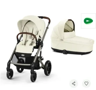 Carro gemelar Cybex en color crema y detalles en marrón. - Chasis robusto. - Capazo incluido. - Capota extensible. - Ruedas todoterreno.