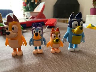 Set de figuras de la familia Bluey. - Incluye 4 muñecos. - Personajes de la popular serie infantil.