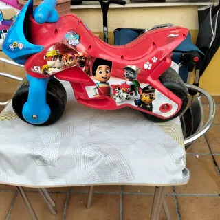Moto de juguete de la Patrulla Canina. - Diseño en color rojo con detalles de los personajes. - Ruedas grandes para mayor estabilidad.