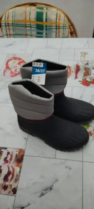 Botas de nieve para niño en talla 36/37. Son cómodas y cálidas. - Exterior de goma. - Parte superior acolchada en gris. - Detalle de borde en color burdeos.