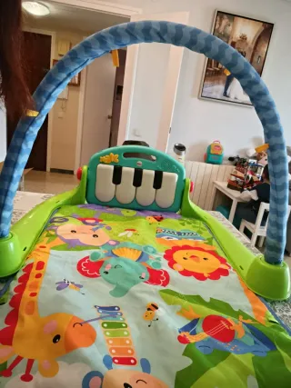 Piano interactivo para bebés de la marca Fisher Price. Ideal para estimular el desarrollo. Falta las piezas colgantes. - Diseño colorido con animales. - Teclas de piano. - Incluye alfombra de actividades.