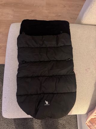 Saco de invierno Cottonmoose en color negro, perfecto para mantener a tu bebé abrigado. - Diseño acolchado. - Interior suave y cálido. - Aberturas para arnés.