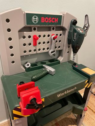 Banco de trabajo de juguete de la marca Bosch, ideal para los pequeños manitas.