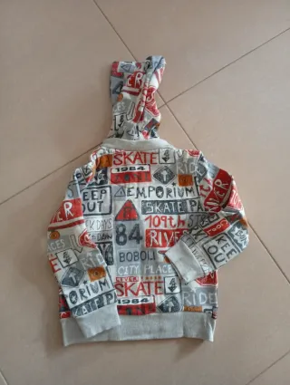 Sudadera estampada con capucha de Boboli. Usada una vez. - Diseño con motivos urbanos y tipografía. - Cierre de cremallera frontal. - Puños y bajo elásticos.