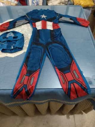 Disfraz de Capitán América para niño, talla M. Perfecto para fiestas o juegos. - Diseño inspirado en el personaje. - Incluye mono completo. - Máscara a juego. Talla 3-4