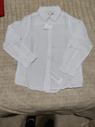 Lote de ropa para niño, tallas 10 a 13 años. Incluye varias camisas y un pantalón. - Camisas de cuadros (rojo y azul). - Camisas lisas (azul claro). - Pantalón azul marino. Hay prendas (3) que están sin estrenar, con su etiqueta y todo.