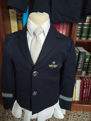 - NUEVO A ESTRENAR - Traje de comunión tipo almirante para niño en talla 10. - Chaqueta cruzada azul marino de doble botonadura. - Corbata beige. - Hombreras doradas. - Puños con detalles dorados. - Insignia dorada en la solapa.