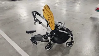 Carrito Bugaboo Bee con silla supletoria. - Color amarillo y negro. - Incluye plataforma para segundo niño. - Capota extensible. - Protector lluvia.