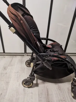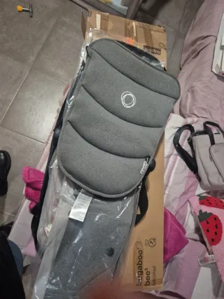 Bugaboo Bee All Black Edition, ideal para piezas o repuestos. Puedo añadir el plástico de la lluvia por 7€ más (22€ en total). Es un carro funcional, como silla auxiliar, pero se puede utilizar para piezas. Ideal para llevar al parque, al campo o a la guardería. Lo que no va bien: descolorida (como se ve en las fotos), no se inclina más de lo que se ve en la imagen, la goma del asidero de un lado está suelta. Lo que va bien: rueda bien, frena bien, el asidero se puede levantar y colocar a más altura. - Asiento acolchado. - Arnés de seguridad de 5 puntos. - Capota extensible. - Cesta de almacenamiento inferior. #carro, bebé