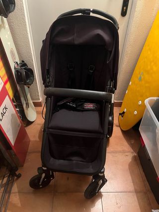 Carro Bugaboo Camaleón en color negro. Se encuentra en buen estado. - Chasis y silla. - Capazo. - Capota. - Cesta de compras. - Cubierta para la lluvia