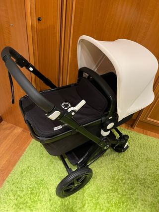 Carrito de bebé Bugaboo Camaleón en buen estado. Es un cochecito muy práctico y versátil. - Chasis negro. - Capota en color blanco. - Ruedas todoterreno.