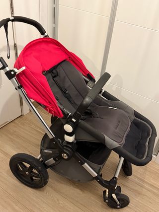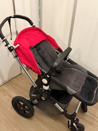Carro Bugaboo Camaleon en color rojo y gris. Ideal para paseos cómodos. - Capazo amplio y confortable. - Capota extensible para mayor protección. - Cesta de compras inferior. - Ruedas todoterreno. Regalo capota gris extensible larga, saco y bolso.