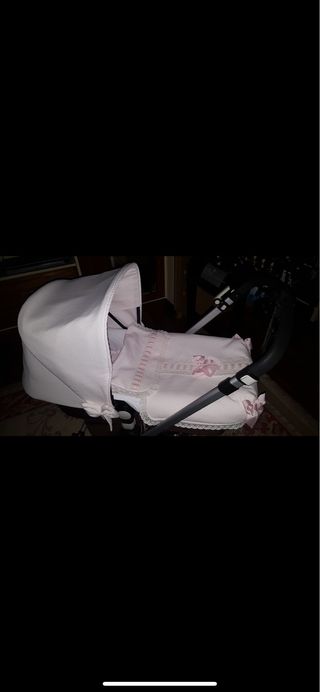 Impecable. Hecho todo a mano. Con capota y sombrilla a juego 65€. Solo el saco 50€.