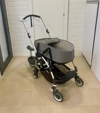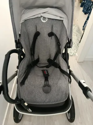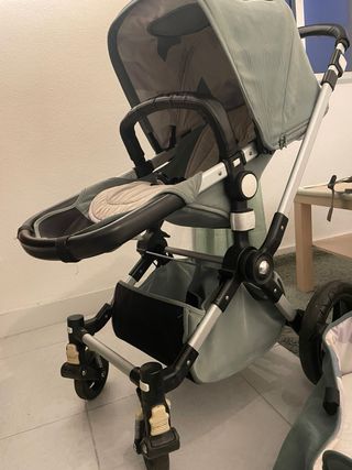 Cochecito Bugaboo , con: silla de paseo, patinete con asiento para el herman@ mayor, capazo Bugaboo y Maxicosi, para el cochecito o para el coche. Nuevo todo vale 1000 euros. Tienes kit completo para 5 años, para uno, dos o tres peques!!!! A nosotros no ha ido muy bien, pero ya han crecido. Y de regalo saquito para invierno. Mejor recoger en persona en Putxet, Barcelona. - Chasis de aluminio. - Capota extensible. - Asiento acolchado. - Cesta de almacenamiento. - Ruedas todoterreno. - Incluye patinete. - Capota extensible. - Asiento reclinable. - Cesta de almacenamiento. - Ruedas todoterreno. - Manillar ajustable. - Frenos de pie.