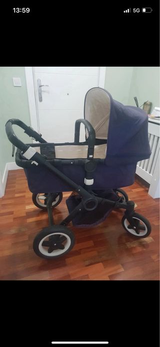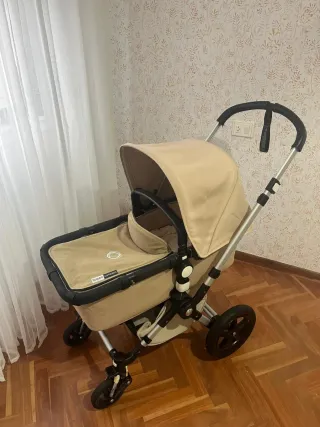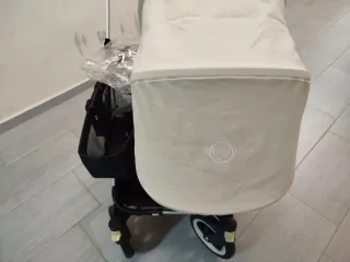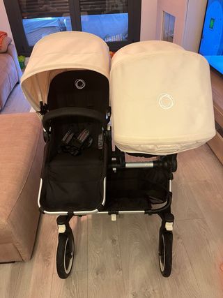 Cochecito Bugaboo en color beige y negro. Incluye capota y plástico protector. - Capota extensible. - Chasis negro. - Se vende completo. Capazos, silletas, plásticos para lluvia. - Etc - *la foto está realizada en la modalidad para uso individual, pero se amplia a gemelar. Puedo hacer más fotos y vídeos para gente realmente interesada y enviarlas por privado. Por favor abstenerse gente no interesada ni curiosos. Gracias. No hago envíos de este producto.