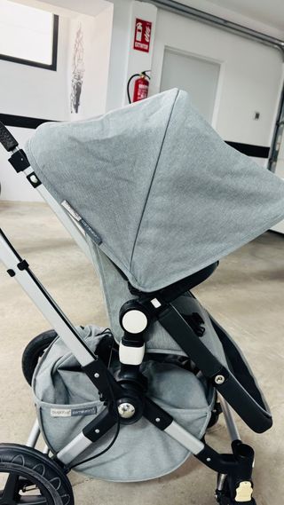 Carrito Bugaboo Fox 2 en color Gris Melange. Incluye accesorios. - Chasis negro - Capazo y silla en color Gris Melange - Capota extensible en color Gris Melange - Cesta inferior con tapa adicional para qué no pierdan nada por el camino - Cubierta protectora lluvia original Bugaboo - Red antimosquitos - Portavasos adicional original Bugaboo - Bolso con cambiador adicional original Bugaboo a juego en color Gris Melange - Ruedas todoterreno