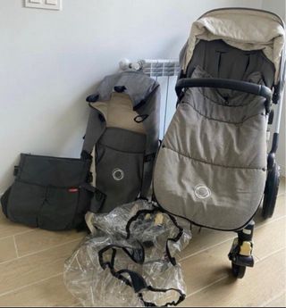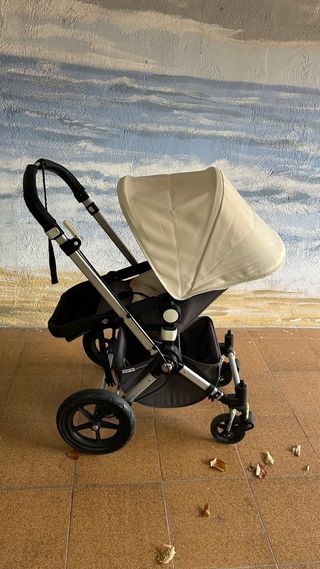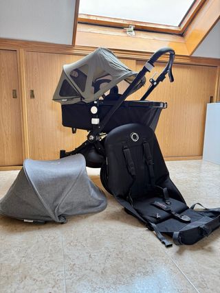 Vendo cochecito de bebé Bugaboo en perfecto estado. Es ligero y fácil de manejar. - Color gris y beige. - Incluye capota extensible. - Tejido de calidad. Capazo en color negro impecable.