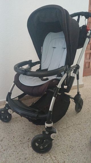 Carro Bugaboo Bee 5 en color negro y azul claro. - Capota extensible. - Asiento reversible. - Manillar ajustable. - Ruedas todoterreno. Carro bugaboo bee 5 ,en muy buenas condiciones. Se vende con barra original,protector de silla de color azul claro,con capota de invierno y otra de verano color azul claro,protector de lluvia original .Los manillares están un poco desgastados pero llevan protector de polipiel,y otro protector de silla de color azul marino Tiene algún rasguño por uso diario se ve en la foto ,las barras de abajo.Mas fotos en privado. Se puede ver y recoger en Rincón de loix , Benidorm